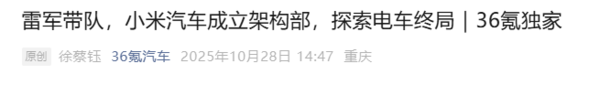该媒体分析称,本轮调整,小米希望借助资深骨干的行业洞察与内部经验,强化对技术趋势的战略预判能力,提升小米汽车未来竞争力。而将技术架构思考提升为一级部门,小米则是希望能够在繁荣但模糊的技术竞争中突出重围,理清技术投入方向。