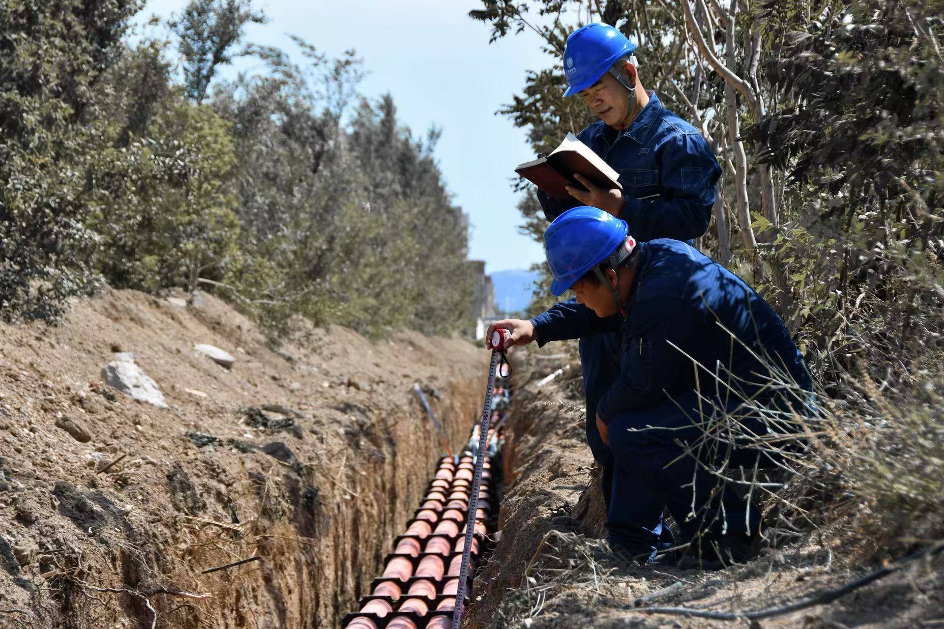 国网博尔塔拉供电公司员工测量电缆管沟深度。杨莹君 摄据了解,该工程土建部分已全部完成,其中电力管廊开挖60千米,建成电缆井1067座,完成25.7公里边防线路铺设。