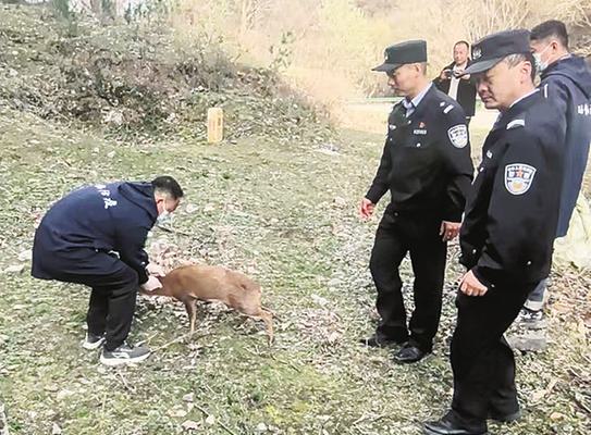本报讯(记者 段序培)近日,一只野生小麂误入陇县固关镇一农户家中,村民发现后立即报警求助。陇县公安局固关派出所迅速出警,联合镇兽医站、林业部门工作人员协同处置(见上图),成功将小麂放归山林。
