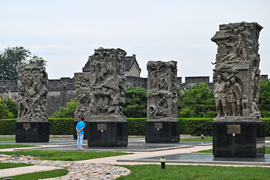 中国人民抗日战争纪念雕塑公园内,38尊青铜雕塑庄严矗立。