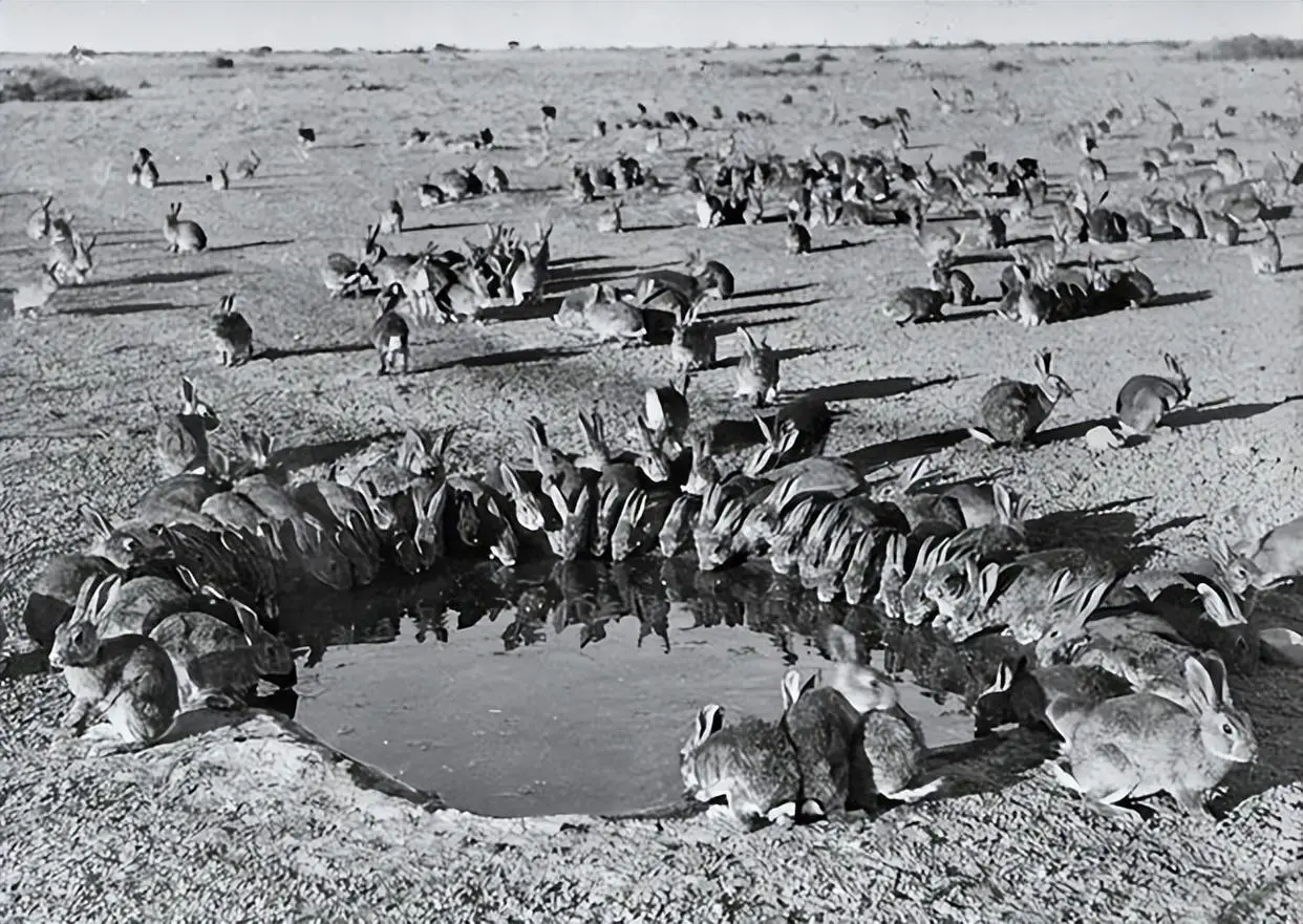 仅仅6年后,这些兔子就繁殖到了上万只。到了1926年,澳大利亚的兔子数量突破了100亿只,像一张移动的地毯铺满了整个大陆。
